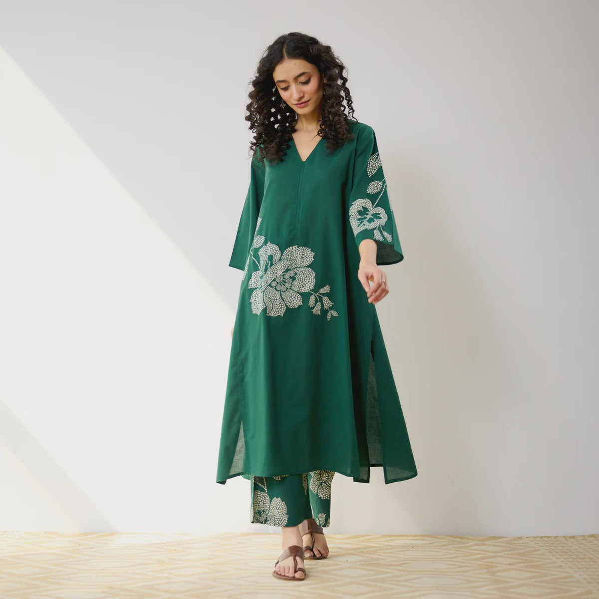 Elevate your everyday style with our Meadow Patchwork Cotton Kurta Set, where timeless tradition meets modern comfort. Crafted from soft, breathable cotton, this elegant green ensemble features delicate floral patchwork that adds an artistic and sophisticated touch.